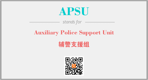 英文缩略词“APSU”经常作为“Auxiliary Police Support Unit”的英文缩写来使用,中文表示:“辅警支援组”。本文将详细介绍英文缩写词APSU所代表英文单词,其对应的中文拼音、详细解释以及在英语中的流行度。此外,还有关于缩略词APSU的分类、应用领域及相关应用示例等。