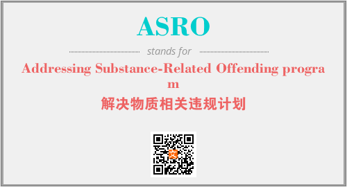 上述内容是“Addressing Substance-Related Offending program”作为“ASRO”的缩写,解释为“解决物质相关违规计划”时的信息,以及英文缩略词ASRO所代表的英文单词,其对应的中文拼音、详细解释以及在英文中的流行度和相关分类、应用领域及应用示例等。