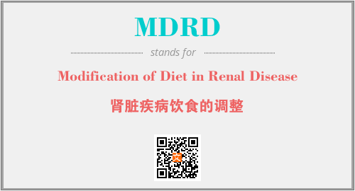 上述内容是“Modification of Diet in Renal Disease”作为“MDRD”的缩写,解释为“肾脏疾病饮食的调整”时的信息,以及英文缩略词MDRD所代表的英文单词,其对应的中文拼音、详细解释以及在英文中的流行度和相关分类、应用领域及应用示例等。
