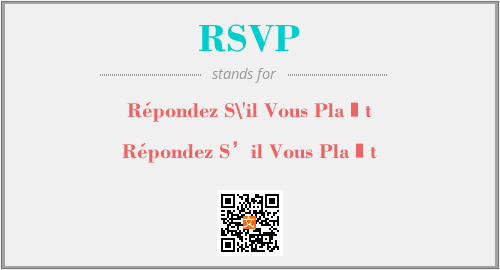 以上为Répondez S\'il Vous Plaît英文缩略词RSVP的中文解释,以及该英文缩写在英语的流行度、分类和应用领域方面的信息。