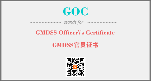 英文缩略词“GOC”经常作为“GMDSS Officer\'s Certificate”的英文缩写来使用,中文表示:“GMDSS官员证书”。本文将详细介绍英文缩写词GOC所代表英文单词,其对应的中文拼音、详细解释以及在英语中的流行度。此外,还有关于缩略词GOC的分类、应用领域及相关应用示例等。