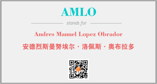 以上为Andres Manuel Lopez Obrador英文缩略词AMLO的中文解释,以及该英文缩写在英语的流行度、分类和应用领域方面的信息。