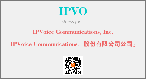 上述内容是“IPVoice Communications, Inc.”作为“IPVO”的缩写,解释为“IPVoice Communications,股份有限公司公司。”时的信息,以及英文缩略词IPVO所代表的英文单词,其对应的中文拼音、详细解释以及在英文中的流行度和相关分类、应用领域及应用示例等。