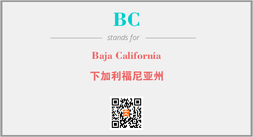上述内容是“Baja California”作为“BC”的缩写,解释为“下加利福尼亚州”时的信息,以及英文缩略词BC所代表的英文单词,其对应的中文拼音、详细解释以及在英文中的流行度和相关分类、应用领域及应用示例等。