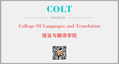 英文缩略词“COLT”经常作为“College Of Languages and Translation”的英文缩写来使用,中文表示:“语言与翻译学院”。本文将详细介绍英文缩写词COLT所代表英文单词,其对应的中文拼音、详细解释以及在英语中的流行度。此外,还有关于缩略词COLT的分类、应用领域及相关应用示例等。