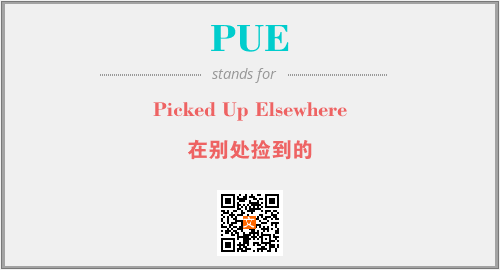 英文缩略词“PUE”经常作为“Picked Up Elsewhere”的英文缩写来使用,中文表示:“在别处捡到的”。本文将详细介绍英文缩写词PUE所代表英文单词,其对应的中文拼音、详细解释以及在英语中的流行度。此外,还有关于缩略词PUE的分类、应用领域及相关应用示例等。