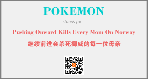 以上为Pushing Onward Kills Every Mom On Norway英文缩略词POKEMON的中文解释,以及该英文缩写在英语的流行度、分类和应用领域方面的信息。