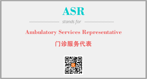 英文缩略词“ASR”经常作为“Ambulatory Services Representative”的英文缩写来使用,中文表示:“门诊服务代表”。本文将详细介绍英文缩写词ASR所代表英文单词,其对应的中文拼音、详细解释以及在英语中的流行度。此外,还有关于缩略词ASR的分类、应用领域及相关应用示例等。