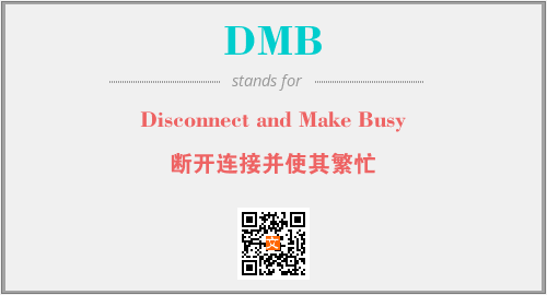 上述内容是“Disconnect and Make Busy”作为“DMB”的缩写,解释为“断开连接并使其繁忙”时的信息,以及英文缩略词DMB所代表的英文单词,其对应的中文拼音、详细解释以及在英文中的流行度和相关分类、应用领域及应用示例等。