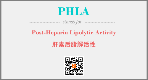上述内容是“Post-Heparin Lipolytic Activity”作为“PHLA”的缩写,解释为“肝素后脂解活性”时的信息,以及英文缩略词PHLA所代表的英文单词,其对应的中文拼音、详细解释以及在英文中的流行度和相关分类、应用领域及应用示例等。