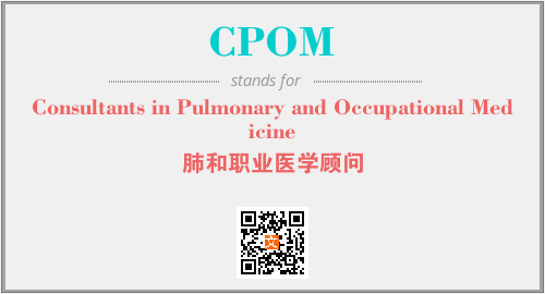 以上为Consultants in Pulmonary and Occupational Medicine英文缩略词CPOM的中文解释,以及该英文缩写在英语的流行度、分类和应用领域方面的信息。