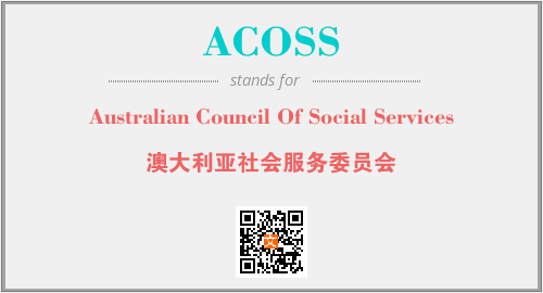 上述内容是“Australian Council Of Social Services”作为“ACOSS”的缩写,解释为“澳大利亚社会服务委员会”时的信息,以及英文缩略词ACOSS所代表的英文单词,其对应的中文拼音、详细解释以及在英文中的流行度和相关分类、应用领域及应用示例等。