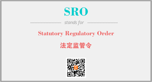 上述内容是“Statutory Regulatory Order”作为“SRO”的缩写,解释为“法定监管令”时的信息,以及英文缩略词SRO所代表的英文单词,其对应的中文拼音、详细解释以及在英文中的流行度和相关分类、应用领域及应用示例等。