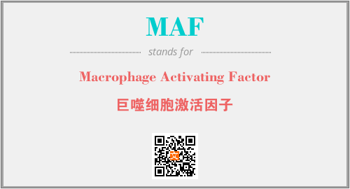 上述内容是“Macrophage Activating Factor”作为“MAF”的缩写,解释为“巨噬细胞激活因子”时的信息,以及英文缩略词MAF所代表的英文单词,其对应的中文拼音、详细解释以及在英文中的流行度和相关分类、应用领域及应用示例等。