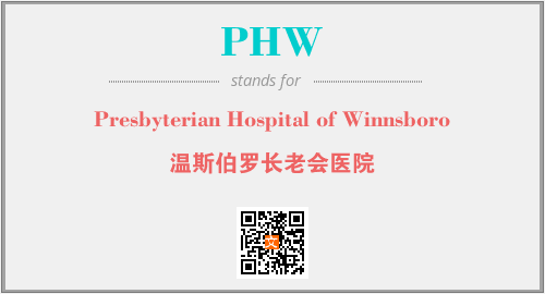 以上为Presbyterian Hospital of Winnsboro英文缩略词PHW的中文解释,以及该英文缩写在英语的流行度、分类和应用领域方面的信息。