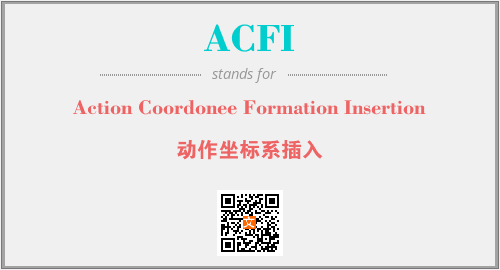 上述内容是“Action Coordonee Formation Insertion”作为“ACFI”的缩写,解释为“动作坐标系插入”时的信息,以及英文缩略词ACFI所代表的英文单词,其对应的中文拼音、详细解释以及在英文中的流行度和相关分类、应用领域及应用示例等。