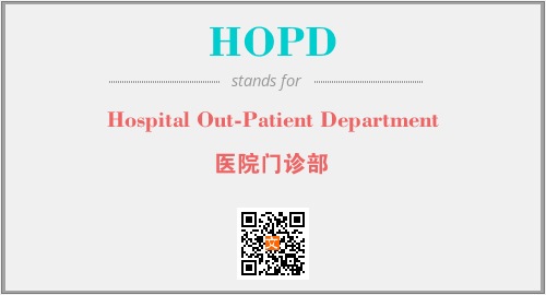 英文缩略词“HOPD”经常作为“Hospital Out-Patient Department”的英文缩写来使用,中文表示:“医院门诊部”。本文将详细介绍英文缩写词HOPD所代表英文单词,其对应的中文拼音、详细解释以及在英语中的流行度。此外,还有关于缩略词HOPD的分类、应用领域及相关应用示例等。