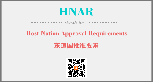 上述内容是“Host Nation Approval Requirements”作为“HNAR”的缩写,解释为“东道国批准要求”时的信息,以及英文缩略词HNAR所代表的英文单词,其对应的中文拼音、详细解释以及在英文中的流行度和相关分类、应用领域及应用示例等。