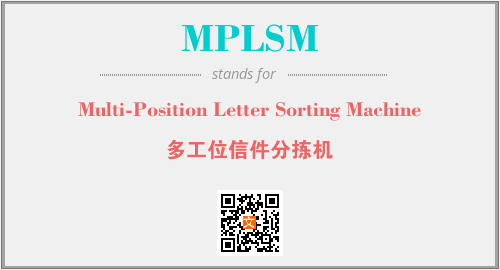 上述内容是“Multi-Position Letter Sorting Machine”作为“MPLSM”的缩写,解释为“多工位信件分拣机”时的信息,以及英文缩略词MPLSM所代表的英文单词,其对应的中文拼音、详细解释以及在英文中的流行度和相关分类、应用领域及应用示例等。