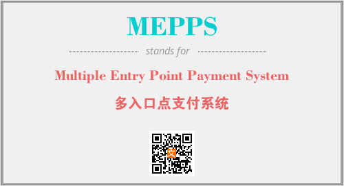 上述内容是“Multiple Entry Point Payment System”作为“MEPPS”的缩写,解释为“多入口点支付系统”时的信息,以及英文缩略词MEPPS所代表的英文单词,其对应的中文拼音、详细解释以及在英文中的流行度和相关分类、应用领域及应用示例等。