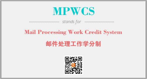 英文缩略词“MPWCS”经常作为“Mail Processing Work Credit System”的英文缩写来使用,中文表示:“邮件处理工作学分制”。本文将详细介绍英文缩写词MPWCS所代表英文单词,其对应的中文拼音、详细解释以及在英语中的流行度。此外,还有关于缩略词MPWCS的分类、应用领域及相关应用示例等。