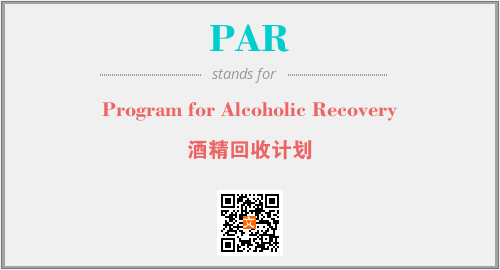 英文缩略词“PAR”经常作为“Program for Alcoholic Recovery”的英文缩写来使用,中文表示:“酒精回收计划”。本文将详细介绍英文缩写词PAR所代表英文单词,其对应的中文拼音、详细解释以及在英语中的流行度。此外,还有关于缩略词PAR的分类、应用领域及相关应用示例等。