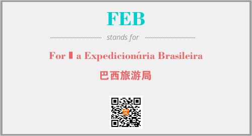 英文缩略词“FEB”经常作为“Força Expedicionária Brasileira”的英文缩写来使用,中文表示:“巴西旅游局”。本文将详细介绍英文缩写词FEB所代表英文单词,其对应的中文拼音、详细解释以及在英语中的流行度。此外,还有关于缩略词FEB的分类、应用领域及相关应用示例等。