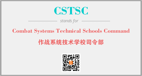 上述内容是“Combat Systems Technical Schools Command”作为“CSTSC”的缩写,解释为“作战系统技术学校司令部”时的信息,以及英文缩略词CSTSC所代表的英文单词,其对应的中文拼音、详细解释以及在英文中的流行度和相关分类、应用领域及应用示例等。
