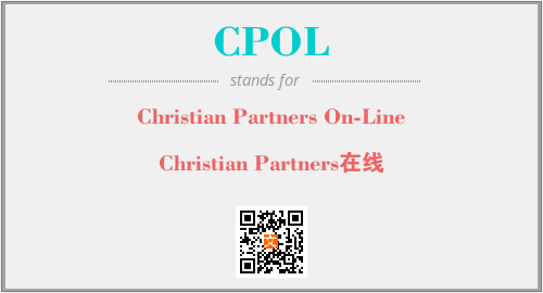 英文缩略词“CPOL”经常作为“Christian Partners On-Line”的英文缩写来使用,中文表示:“Christian Partners在线”。本文将详细介绍英文缩写词CPOL所代表英文单词,其对应的中文拼音、详细解释以及在英语中的流行度。此外,还有关于缩略词CPOL的分类、应用领域及相关应用示例等。