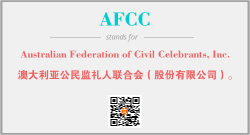 上述内容是“Australian Federation of Civil Celebrants, Inc.”作为“AFCC”的缩写,解释为“澳大利亚公民监礼人联合会(股份有限公司)。”时的信息,以及英文缩略词AFCC所代表的英文单词,其对应的中文拼音、详细解释以及在英文中的流行度和相关分类、应用领域及应用示例等。