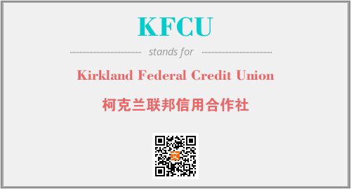 上述内容是“Kirkland Federal Credit Union”作为“KFCU”的缩写,解释为“柯克兰联邦信用合作社”时的信息,以及英文缩略词KFCU所代表的英文单词,其对应的中文拼音、详细解释以及在英文中的流行度和相关分类、应用领域及应用示例等。