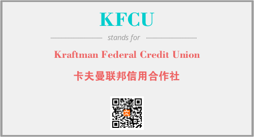 上述内容是“Kraftman Federal Credit Union”作为“KFCU”的缩写,解释为“卡夫曼联邦信用合作社”时的信息,以及英文缩略词KFCU所代表的英文单词,其对应的中文拼音、详细解释以及在英文中的流行度和相关分类、应用领域及应用示例等。