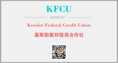 上述内容是“Keesler Federal Credit Union”作为“KFCU”的缩写,解释为“基斯勒联邦信用合作社”时的信息,以及英文缩略词KFCU所代表的英文单词,其对应的中文拼音、详细解释以及在英文中的流行度和相关分类、应用领域及应用示例等。