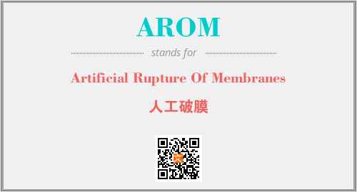上述内容是“Artificial Rupture Of Membranes”作为“AROM”的缩写,解释为“人工破膜”时的信息,以及英文缩略词AROM所代表的英文单词,其对应的中文拼音、详细解释以及在英文中的流行度和相关分类、应用领域及应用示例等。