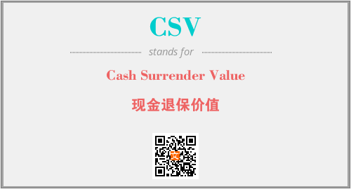 以上为Cash Surrender Value英文缩略词CSV的中文解释,以及该英文缩写在英语的流行度、分类和应用领域方面的信息。