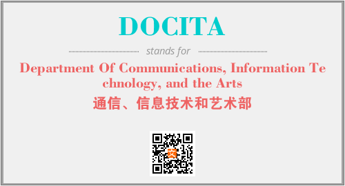 上述内容是“Department Of Communications, Information Technology, and the Arts”作为“DOCITA”的缩写,解释为“通信、信息技术和艺术部”时的信息,以及英文缩略词DOCITA所代表的英文单词,其对应的中文拼音、详细解释以及在英文中的流行度和相关分类、应用领域及应用示例等。
