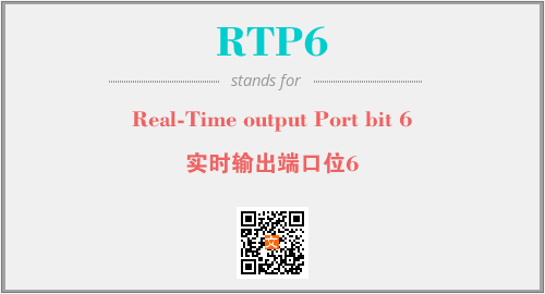 上述内容是“Real-Time output Port bit 6”作为“RTP6”的缩写,解释为“实时输出端口位6”时的信息,以及英文缩略词RTP6所代表的英文单词,其对应的中文拼音、详细解释以及在英文中的流行度和相关分类、应用领域及应用示例等。