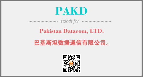 上述内容是“Pakistan Datacom, LTD.”作为“PAKD”的缩写,解释为“巴基斯坦数据通信有限公司。”时的信息,以及英文缩略词PAKD所代表的英文单词,其对应的中文拼音、详细解释以及在英文中的流行度和相关分类、应用领域及应用示例等。