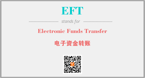 英文缩略词“EFT”经常作为“Electronic Funds Transfer”的英文缩写来使用,中文表示:“电子资金转账”。本文将详细介绍英文缩写词EFT所代表英文单词,其对应的中文拼音、详细解释以及在英语中的流行度。此外,还有关于缩略词EFT的分类、应用领域及相关应用示例等。