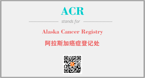 上述内容是“Alaska Cancer Registry”作为“ACR”的缩写,解释为“阿拉斯加癌症登记处”时的信息,以及英文缩略词ACR所代表的英文单词,其对应的中文拼音、详细解释以及在英文中的流行度和相关分类、应用领域及应用示例等。