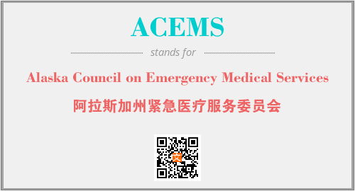 上述内容是“Alaska Council on Emergency Medical Services”作为“ACEMS”的缩写,解释为“阿拉斯加州紧急医疗服务委员会”时的信息,以及英文缩略词ACEMS所代表的英文单词,其对应的中文拼音、详细解释以及在英文中的流行度和相关分类、应用领域及应用示例等。