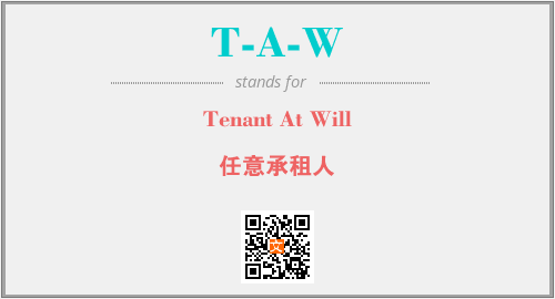 上述内容是“Tenant At Will”作为“T-A-W”的缩写,解释为“任意承租人”时的信息,以及英文缩略词T-A-W所代表的英文单词,其对应的中文拼音、详细解释以及在英文中的流行度和相关分类、应用领域及应用示例等。