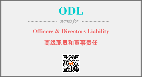 上述内容是“Officers & Directors Liability”作为“ODL”的缩写,解释为“高级职员和董事责任”时的信息,以及英文缩略词ODL所代表的英文单词,其对应的中文拼音、详细解释以及在英文中的流行度和相关分类、应用领域及应用示例等。