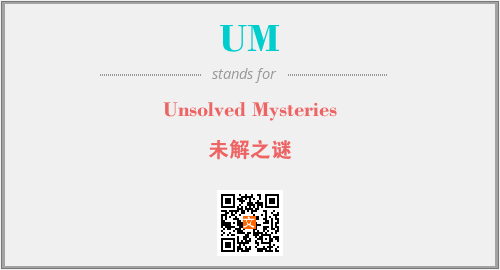 上述内容是“Unsolved Mysteries”作为“UM”的缩写,解释为“未解之谜”时的信息,以及英文缩略词UM所代表的英文单词,其对应的中文拼音、详细解释以及在英文中的流行度和相关分类、应用领域及应用示例等。