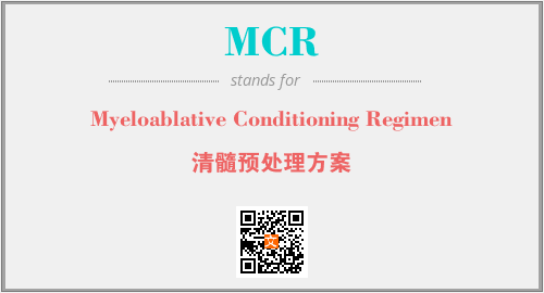 英文缩略词“MCR”经常作为“Myeloablative Conditioning Regimen”的英文缩写来使用,中文表示:“清髓预处理方案”。本文将详细介绍英文缩写词MCR所代表英文单词,其对应的中文拼音、详细解释以及在英语中的流行度。此外,还有关于缩略词MCR的分类、应用领域及相关应用示例等。