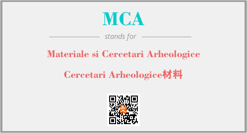 英文缩略词“MCA”经常作为“Materiale si Cercetari Arheologice”的英文缩写来使用,中文表示:“Cercetari Arheologice材料”。本文将详细介绍英文缩写词MCA所代表英文单词,其对应的中文拼音、详细解释以及在英语中的流行度。此外,还有关于缩略词MCA的分类、应用领域及相关应用示例等。
