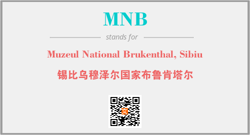英文缩略词“MNB”经常作为“Muzeul National Brukenthal, Sibiu”的英文缩写来使用,中文表示:“锡比乌穆泽尔国家布鲁肯塔尔”。本文将详细介绍英文缩写词MNB所代表英文单词,其对应的中文拼音、详细解释以及在英语中的流行度。此外,还有关于缩略词MNB的分类、应用领域及相关应用示例等。
