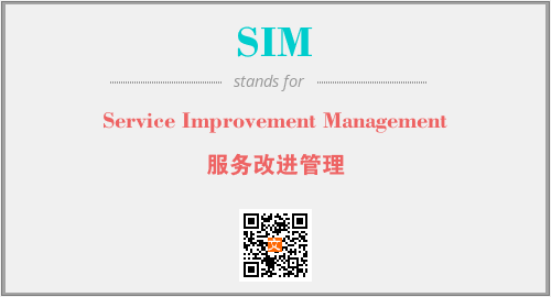 英文缩略词“SIM”经常作为“Service Improvement Management”的英文缩写来使用,中文表示:“服务改进管理”。本文将详细介绍英文缩写词SIM所代表英文单词,其对应的中文拼音、详细解释以及在英语中的流行度。此外,还有关于缩略词SIM的分类、应用领域及相关应用示例等。