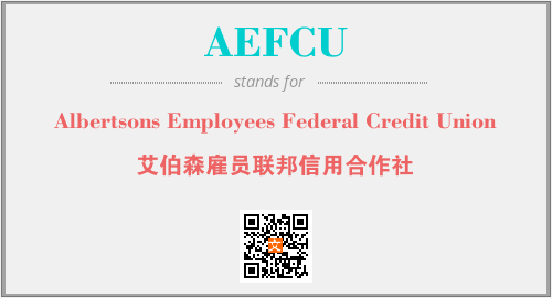 上述内容是“Albertsons Employees Federal Credit Union”作为“AEFCU”的缩写,解释为“艾伯森雇员联邦信用合作社”时的信息,以及英文缩略词AEFCU所代表的英文单词,其对应的中文拼音、详细解释以及在英文中的流行度和相关分类、应用领域及应用示例等。