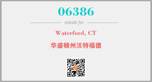 上述内容是“Waterford, CT”作为“06386”的缩写,解释为“华盛顿州沃特福德”时的信息,以及英文缩略词06386所代表的英文单词,其对应的中文拼音、详细解释以及在英文中的流行度和相关分类、应用领域及应用示例等。